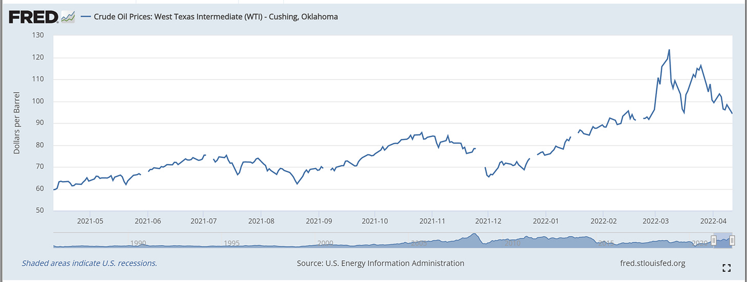 Yes, actions have consequences. Oil impacts the costs of nearly everything – primarily through its place in the transportation part of the supply chain. When the price of oil goes up, gas prices go up, and then the cost to deliver produce, meat, video games, etc… increase. There are also a litany of other fallouts from the war including fertilizer prices (going to rise due to production in Ukraine / Belarus being less available) and wheat (Ukraine grows a ton of wheat). So by standing up for democracy and engaging in economic warfare we are going to suffer some inflationary pressure on the supply side.