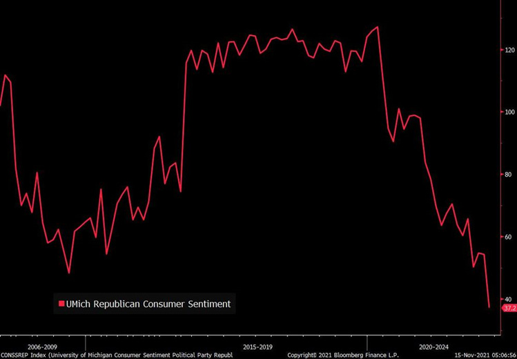 [2] I mean…maybe Republicans do want that. Republican Consumer Sentiment was lower in late 2021 than in the Great Recession…when gas prices were $4+ and unemployment was ravaging the country.